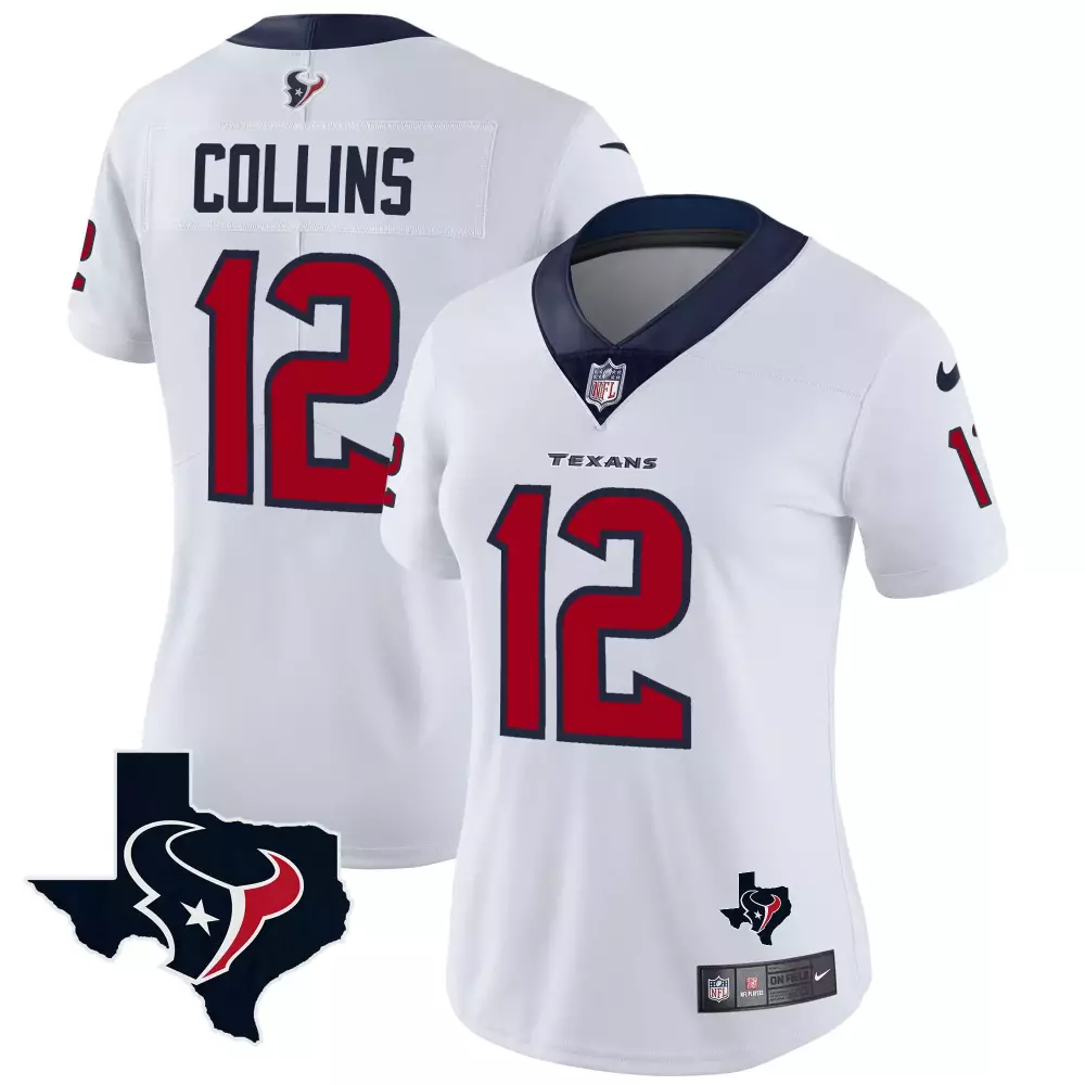 nico collins white womens houston texans gold trim vapor jersey all stitched;nico collins white womens houston texans vapor limited jersey all stitched;nico collins women houston texans 2023 afc south champions patch split vapor jersey all stitched;nico collins youth houston texans 2023 afc south champions patch split vapor jersey all stitched;nico collins youth houston texans color rush legend game jersey all stitched