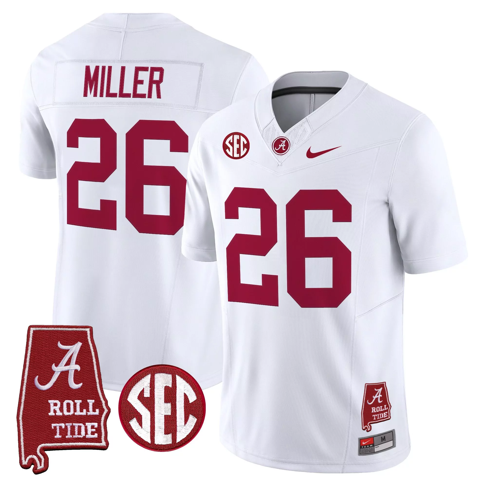 player unknown number 18 men s alabama crimson tide 2025 vapor limited jersey white with stitched patches;player unknown number 18 men s alabama crimson tide black vapor limited jersey 2025 sec stitched patches;player unknown number 18 men s vapor stitched alabama crimson tide jersey white black sec patch year 2023;miller 26 men s alabama crimson tide white vapor jersey with embroidered patches 2023;brooks 25 men s arizona state sun devils maroon vapor limited stitched jersey 2025 xii patch