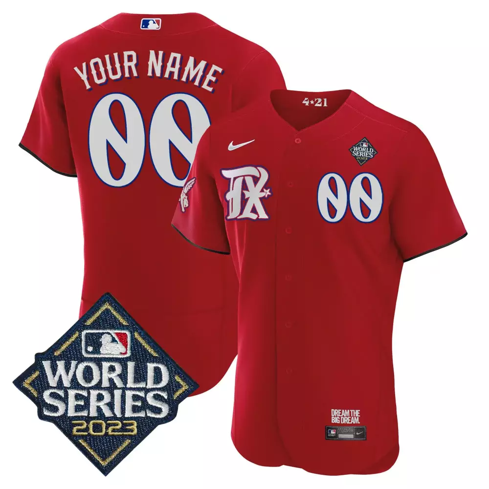 red youth texas rangers 2023 world series champions flex base custom jersey v2 all stitched
