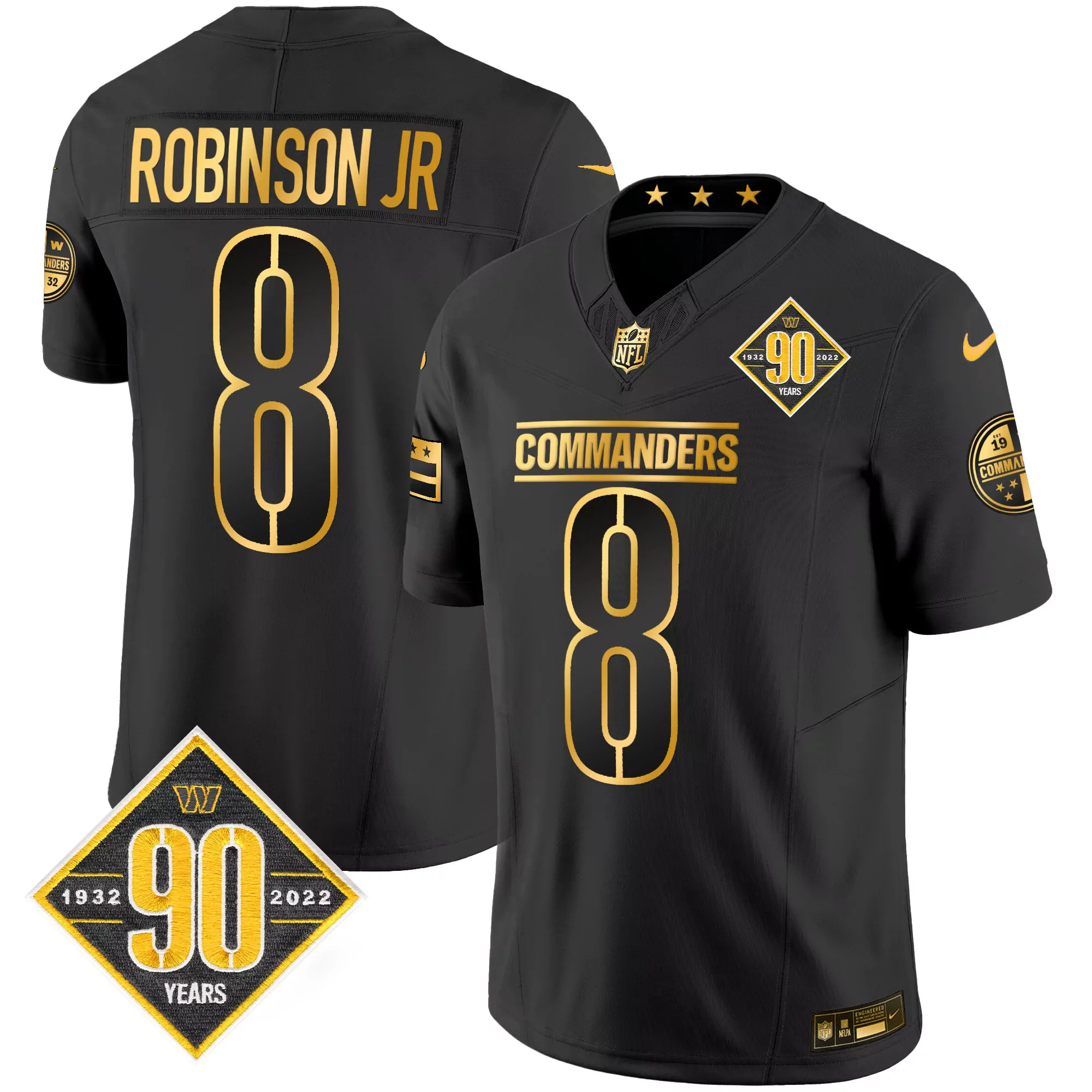 robinson jr 8 washington commanders 2022 men s all stitched vapor jersey black 90 years edition 3