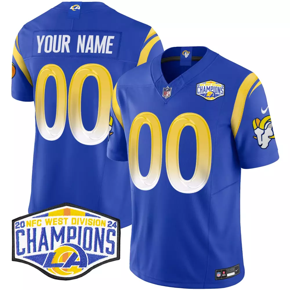 royal alternate youth los angeles rams california patch vapor limited custom jersey all stitched;royal alternate youth los angeles rams vapor limited custom jersey v2 all stitched;royal men los angeles rams 2024 nfc west division champions vapor limited custom jersey all stitched;royal men los angeles rams california patch vapor limited custom jersey all stitched;royal men los angeles rams custom game jersey all stitched
