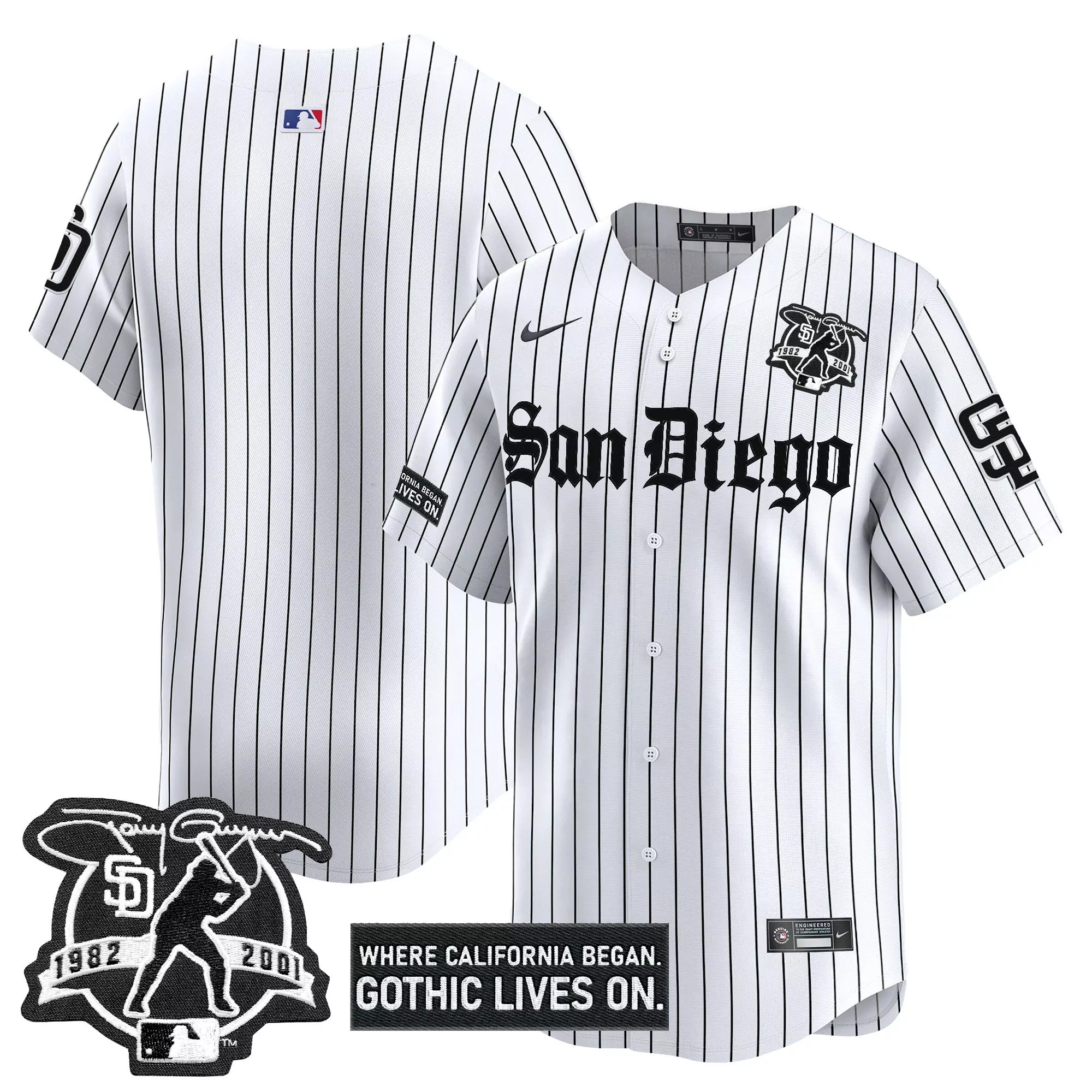 san diego padres vapor jersey white stitched 1982 2001 patch men s barrio edition;san diego padres vapor jersey white striped gothic edition 2001 men s stitched;san diego padres white all stitched vapor jersey custom 00 limited edition;san diego padres white all stitched vapor jersey limited edition custom design;san diego padres white cool base limited custom jersey all stitched