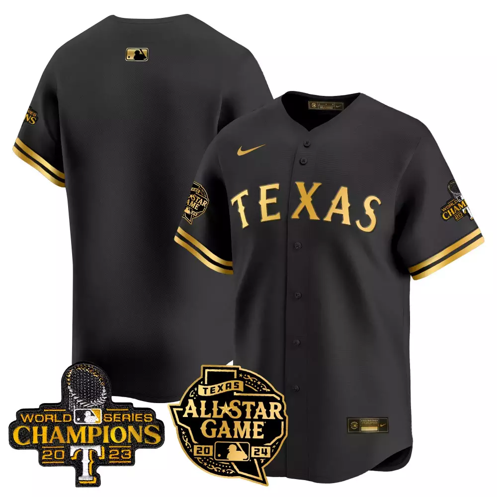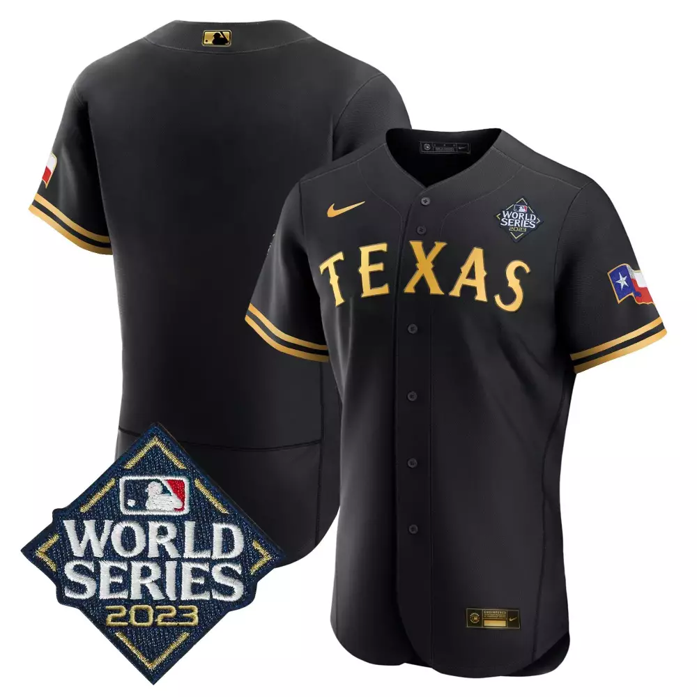 team black gold mens texas rangers 2023 world series flex base jersey all stitched;team black gold mens texas rangers 2023 world series flex base jersey v1 all stitched;team black gold mens texas rangers 2023 world series flex base jersey v2 all stitched;team black gold mens texas rangers 2024 all star game patch vapor premier limited jersey all stitched;team black gold mens texas rangers 2024 jackie robinson patch vapor premier limited jersey all stitched