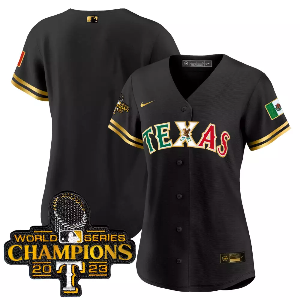 team black gold womens texas rangers mexico 2023 world series champions baseball jersey all stitched