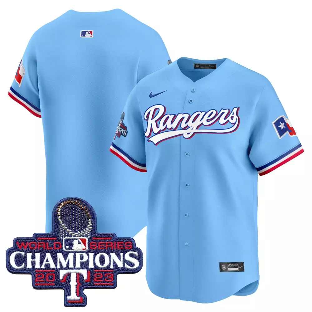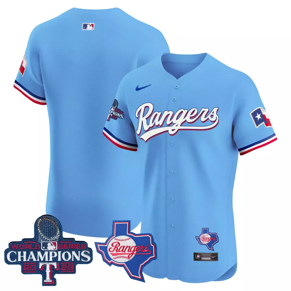 team blue mens texas rangers arlington champions vapor premier limited jersey all stitched;team blue mens texas rangers texas state patch jersey all stitched;team blue mens texas rangers world series champions vapor premier elite jersey all stitched;team blue mens texas rangers world series champions vapor premier elite jersey v2 all stitched;team blue mens texas rangers world series champions vapor premier limited jersey all stitched