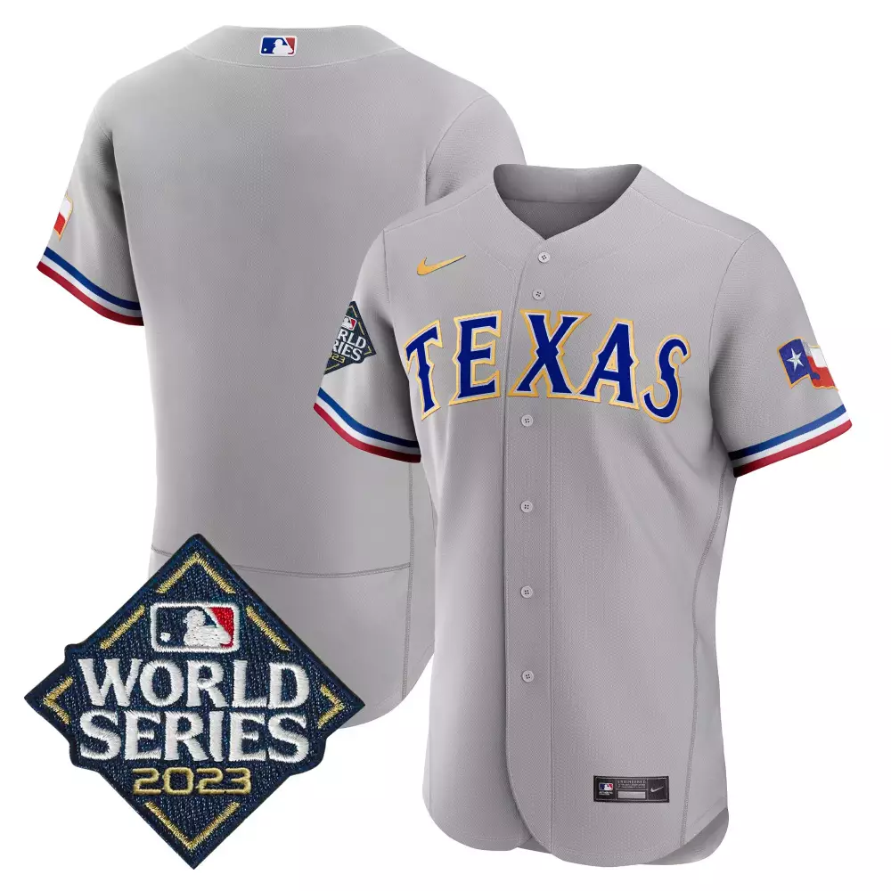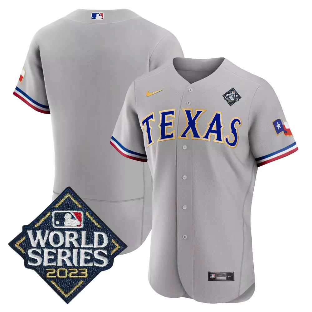 team gray mens texas rangers 2023 world series cool base gold trim jersey v2 all stitched;team gray mens texas rangers 2023 world series flex base gold trim jersey all stitched;team gray mens texas rangers 2023 world series flex base gold trim jersey v2 all stitched;team gray mens texas rangers gold trim cool base jersey texas patch all stitched;team gray mens texas rangers gold trim flex base jersey texas patch all stitched