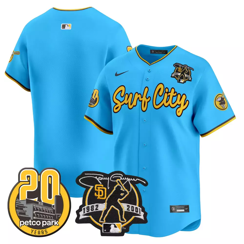 team light blue mens san diego padres tony gwynn petco park 20th patch vapor premier limited jersey v3 n all stitched