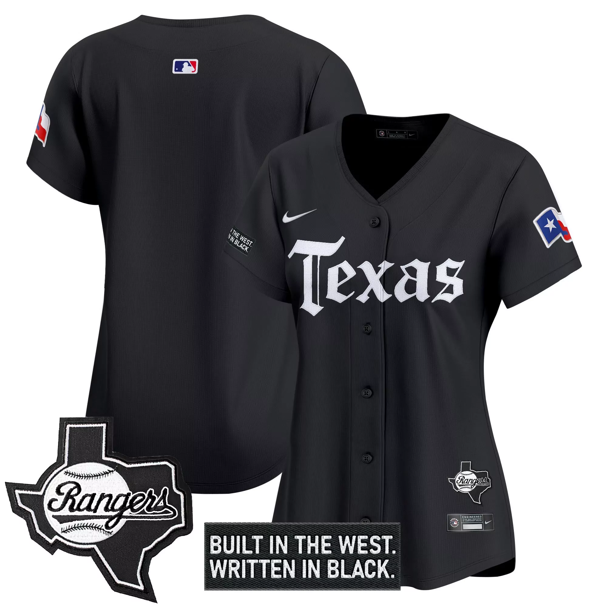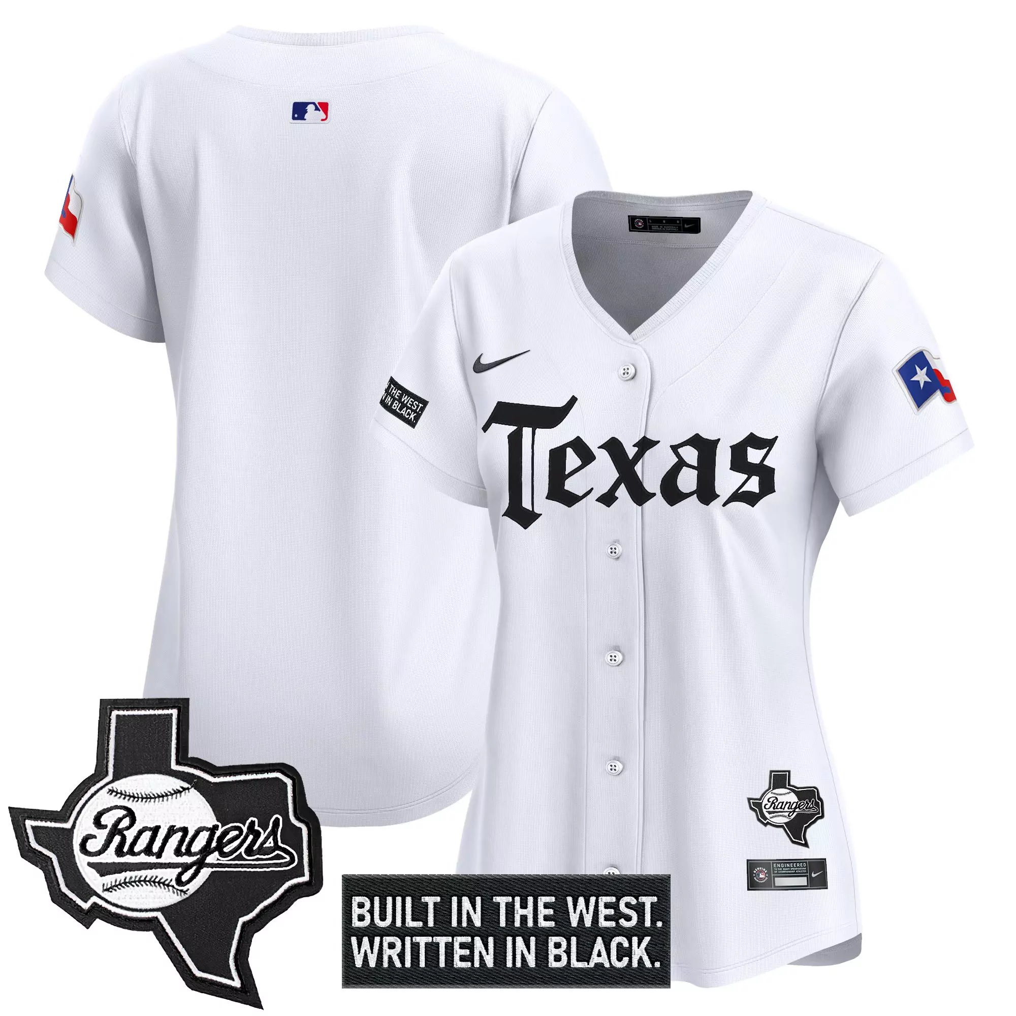 Texas Rangers Women S Vapor Jersey White Black Built In The West Patch 2023