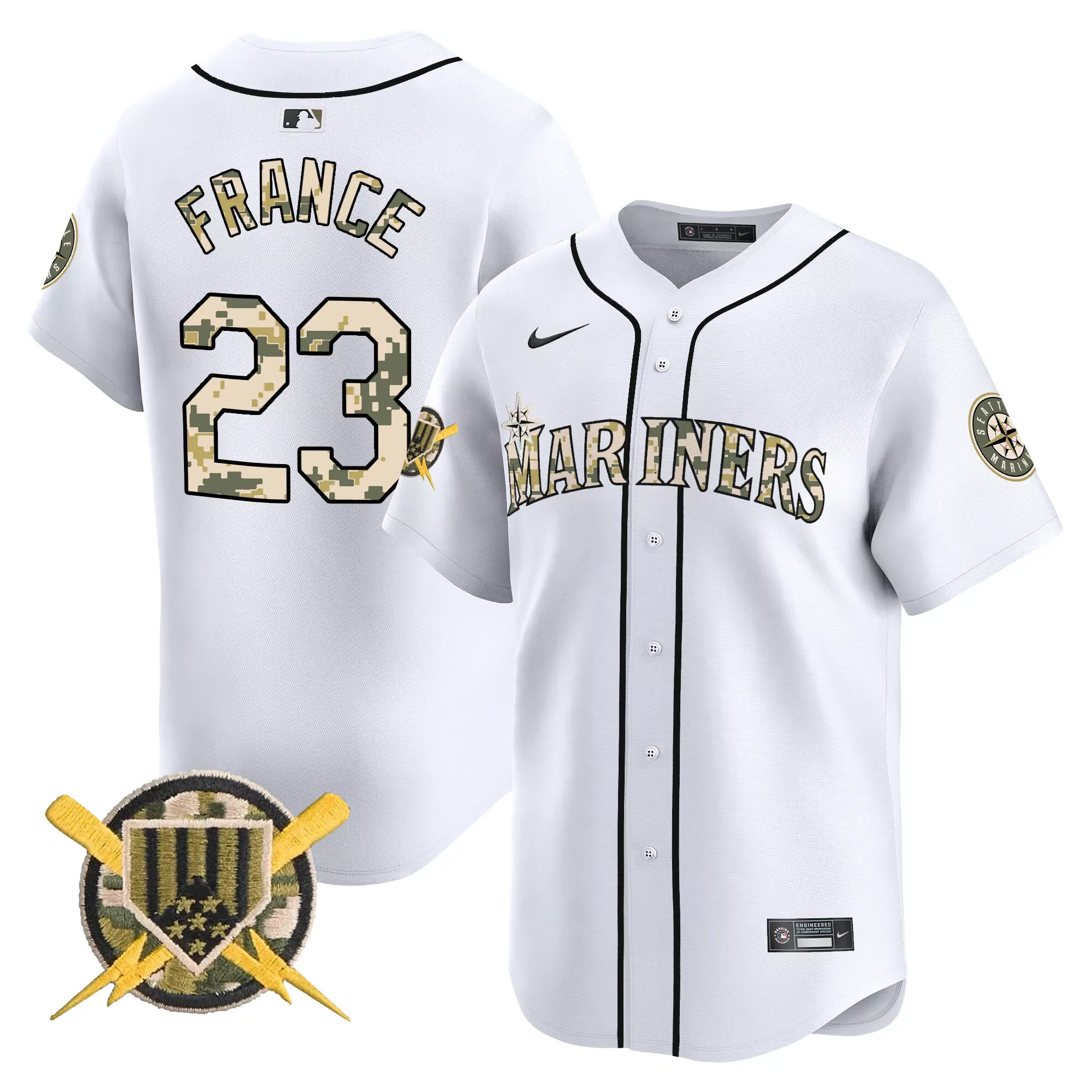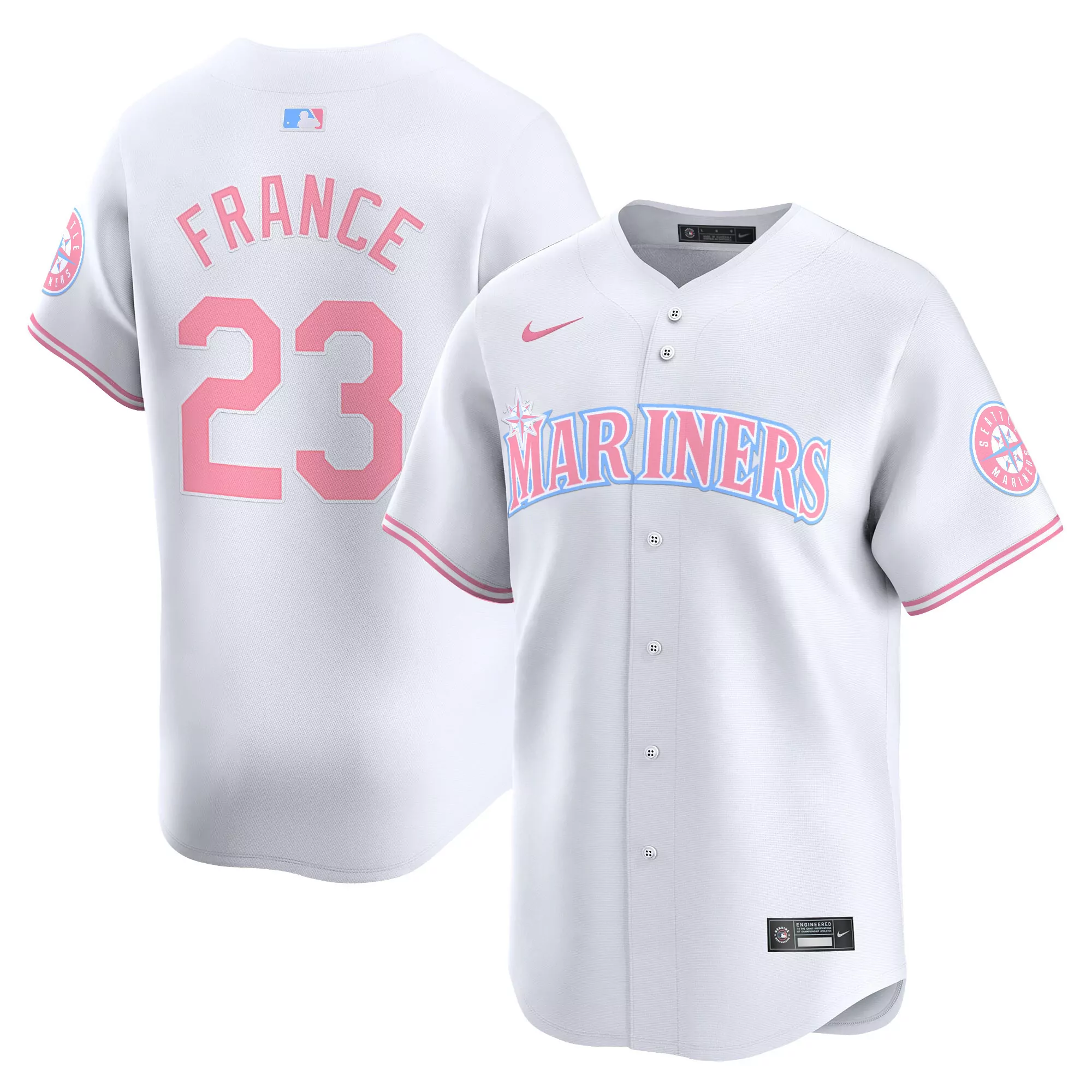 ty france white gold womens seattle mariners 2023 city connect gold jersey all stitched;ty france white mens seattle mariners armed forces day vapor premier limited jersey all stitched;ty france white mens seattle mariners trident patch vapor premier limited jersey all stitched;ty france white unisex seattle mariners bubblegum pink vapor premier limited jersey all stitched;upamecano away mens france 2024 stadium homeaway soccer jersey