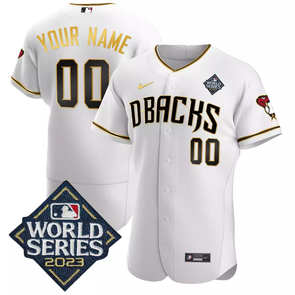 white gold men arizona diamondbacks 2023 world series flex base gold custom jersey all stitched;white gold men arizona diamondbacks 2023 world series flex base gold custom jersey v2 all stitched;white gold men arizona diamondbacks cool base gold trim custom jersey all stitched;white gold youth arizona diamondbacks 2023 world series cool base gold custom jersey all stitched;white gold youth arizona diamondbacks 2023 world series cool base gold custom jersey v2 all stitched