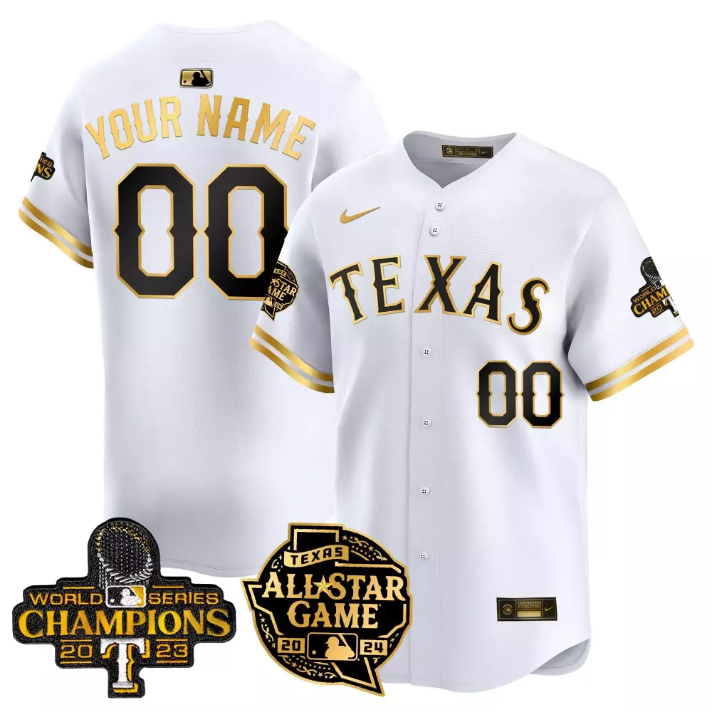 white gold youth texas rangers 2023 world series flex base custom jersey v2 all stitched;white gold youth texas rangers 2023 world series texas state patch gold custom jersey all stitched;white gold youth texas rangers 2023 world series texas state patch gold custom jersey v2 all stitched;white gold youth texas rangers 2024 all star game patch vapor premier limited custom jersey all stitched;white gold youth texas rangers 2024 jackie robinson patch vapor premier limited custom jersey all stitched