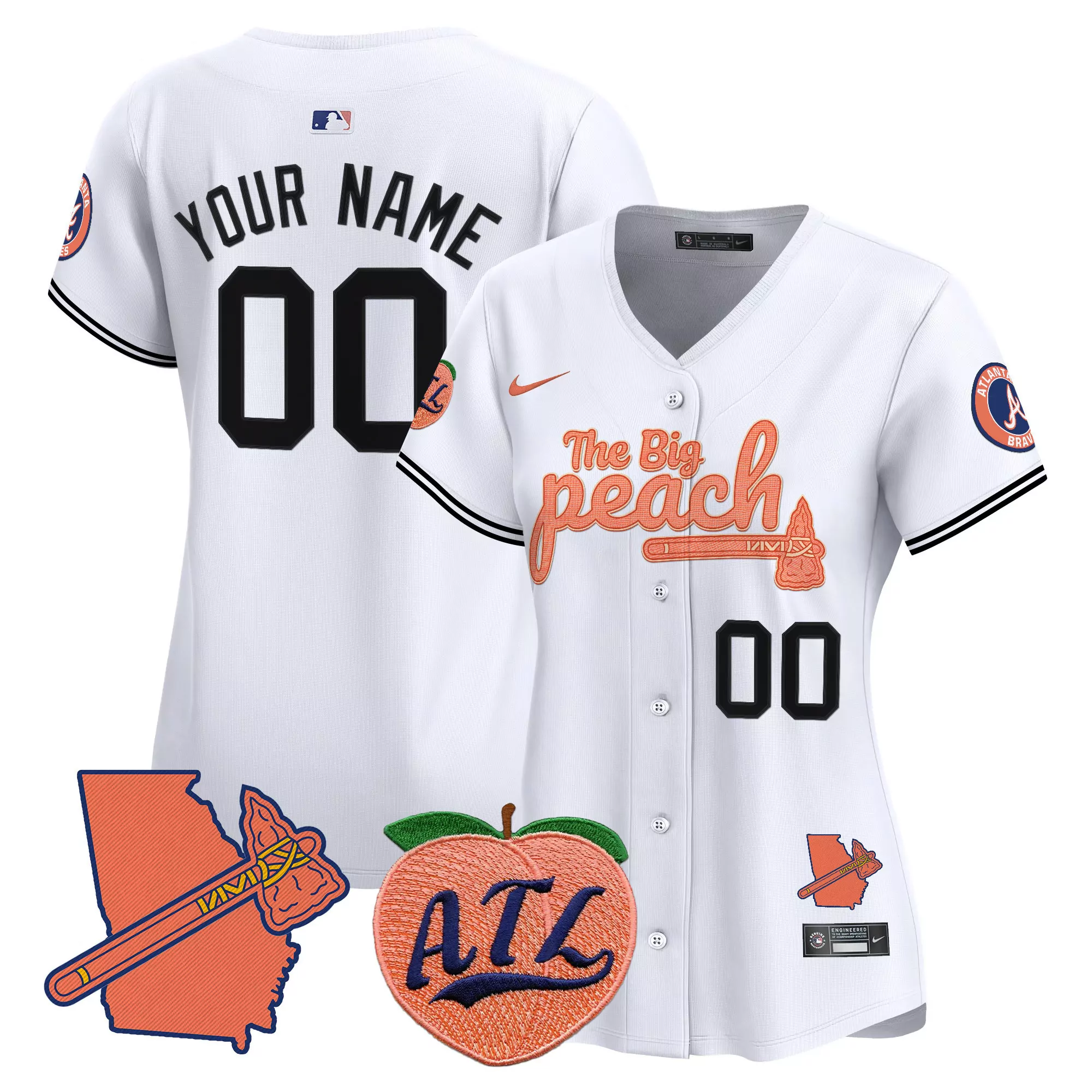 white women atlanta braves the big peach vapor premier limited custom jersey all stitched;white women atlanta braves the big peach vapor premier limited custom jersey v2 all stitched;white women dale murphy atlanta braves 2022 world champions gold trim jersey all stitched;white women deion sanders atlanta braves 1992 world series jersey all stitched;white women hank aaron atlanta braves 1969 majestic throwback jersey all stitched