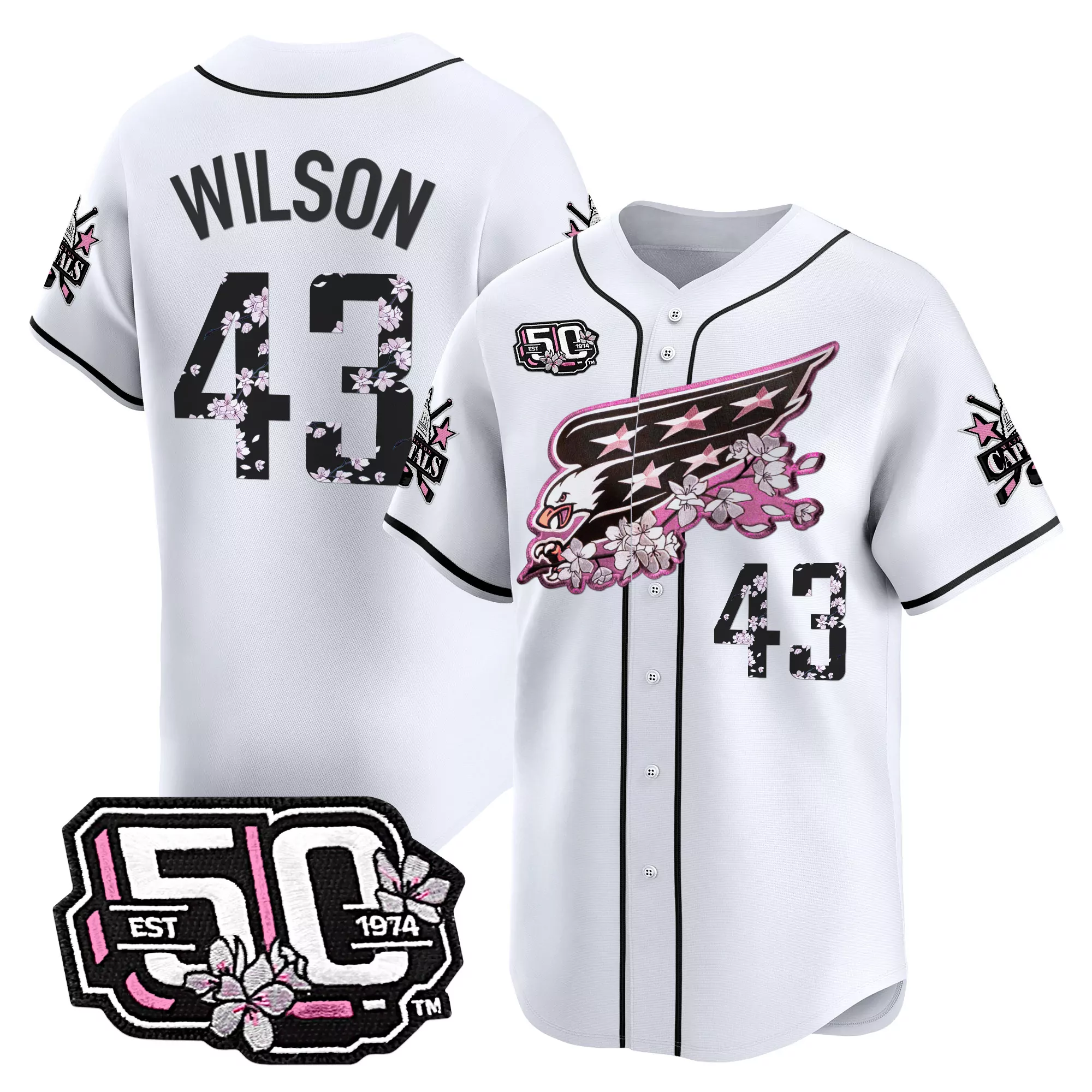 Wilson 43 Pink Vapor Jersey With 50Th Anniversary Patch Men S Stitched 2024;Wilson 43 Red Vapor Jersey With 50Th Anniversary Patch Men S Stitched Style 2024;Wilson 43 White Vapor Jersey With 50Th Anniversary Embroidered Patch Men S Style 2024;Army 13 Daily Men S Stitched Vapor Limited Jersey 2024 Aac Patch Gold;Harrelson 9 Men S Vapor Jersey White Striped Acc Embroidered Patch 2025