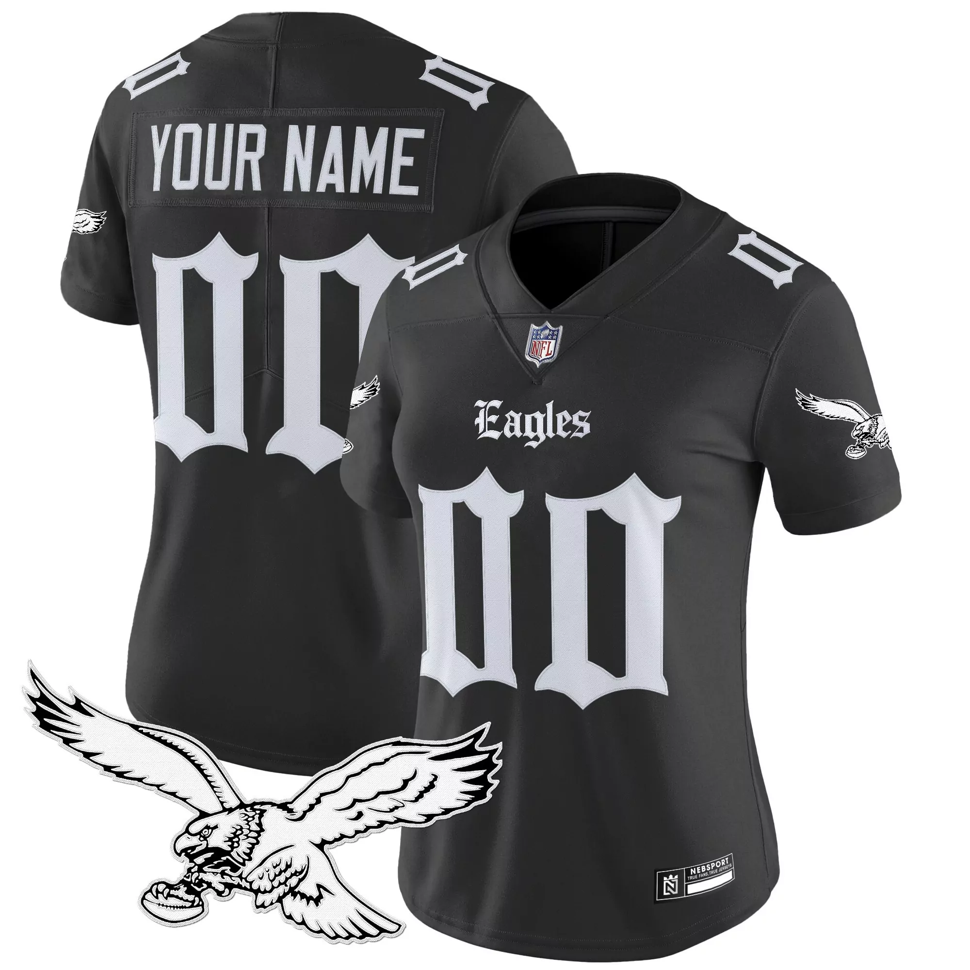 your name 00 philadelphia eagles black vapor jersey stitched 2023 edition embroidered patch