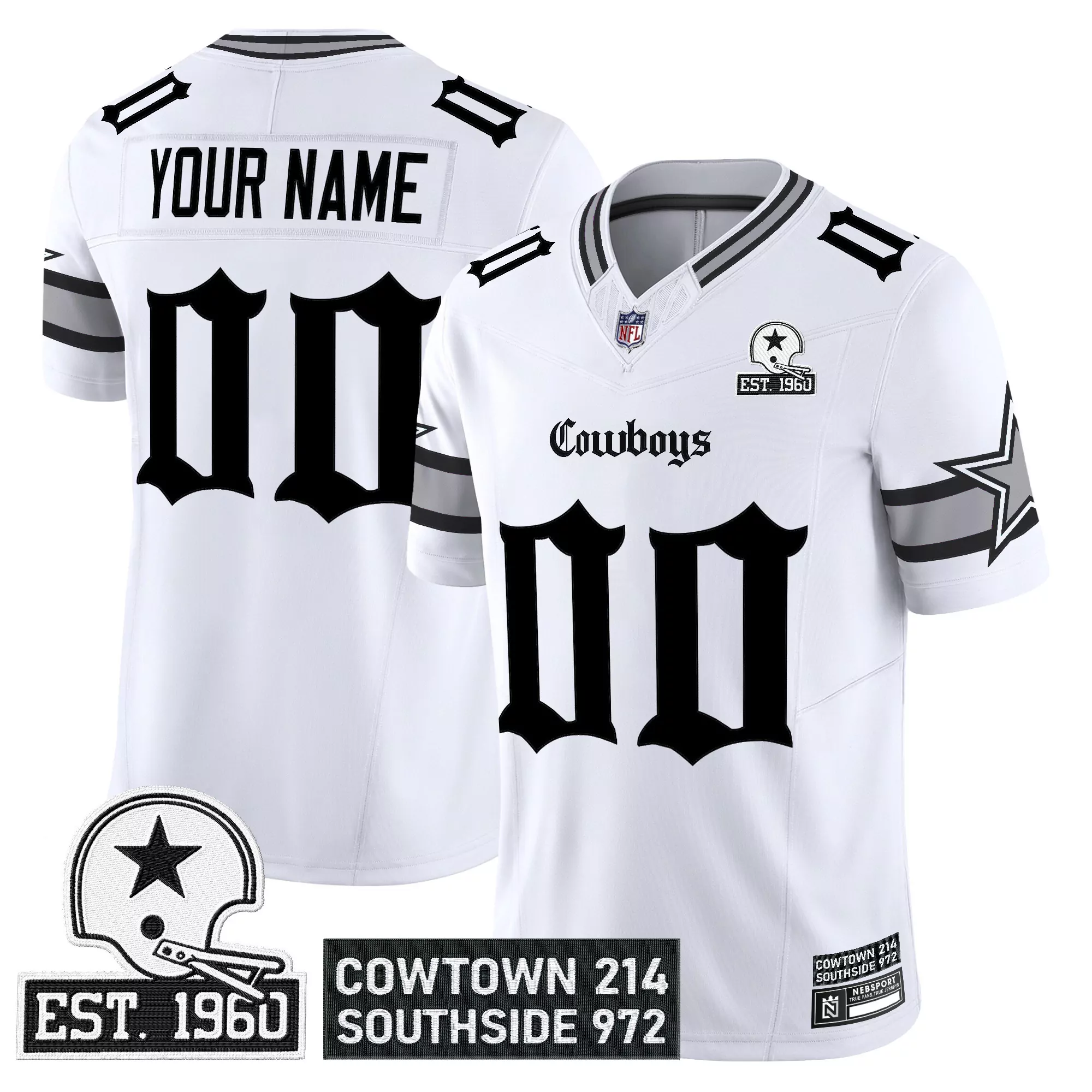 your name 00 stitched vapor jersey dallas cowboys white limited edition 2023 est 1960