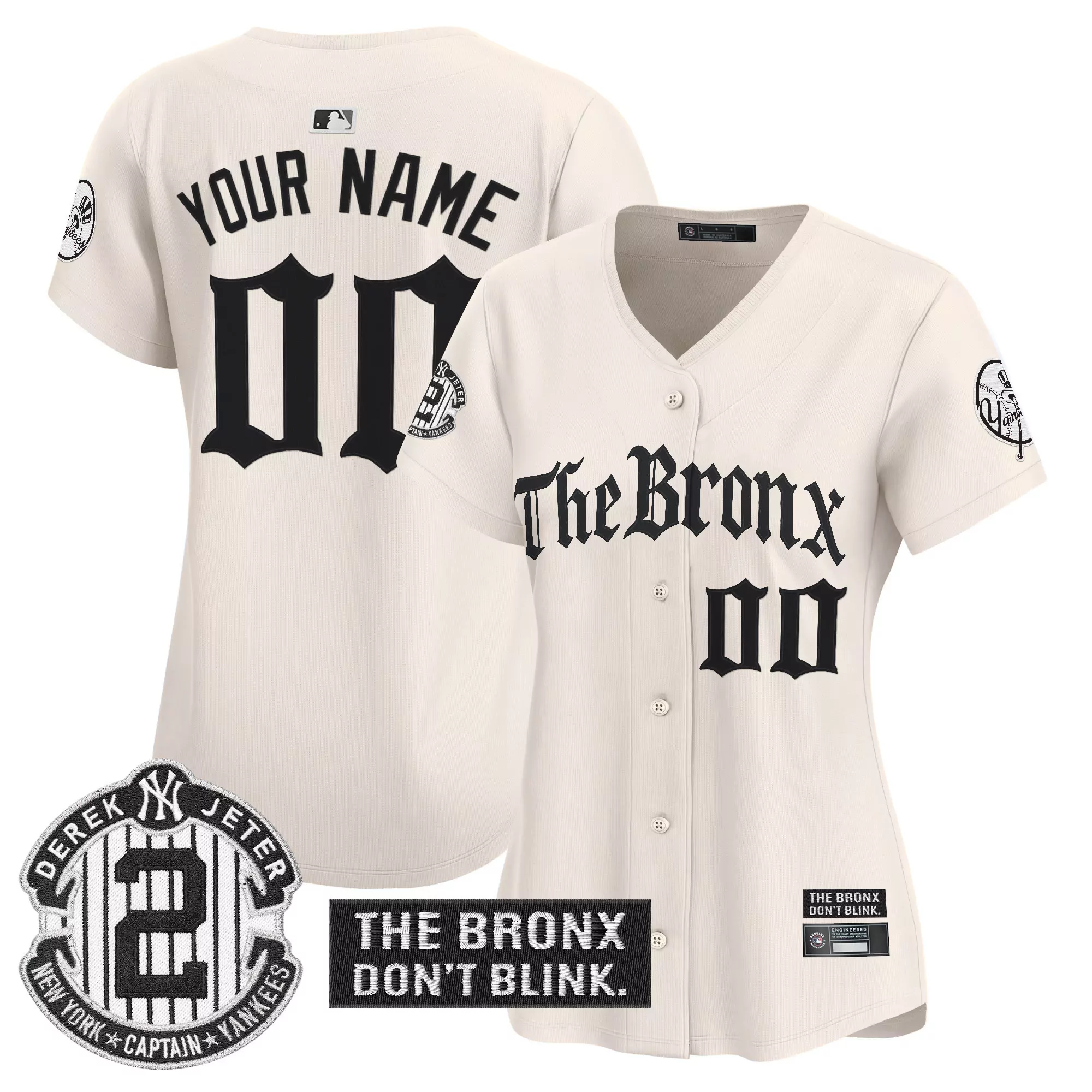 Your Name 00 Women S Stitched Vapor Jersey New York Yankees Cream 2023 The Bronx Don T Blink Patch